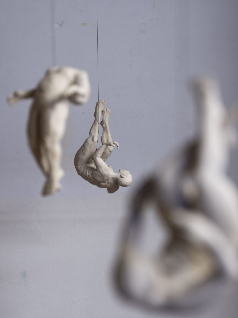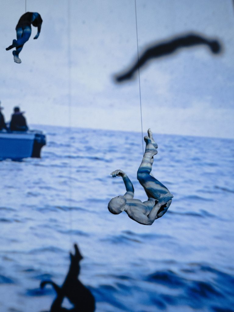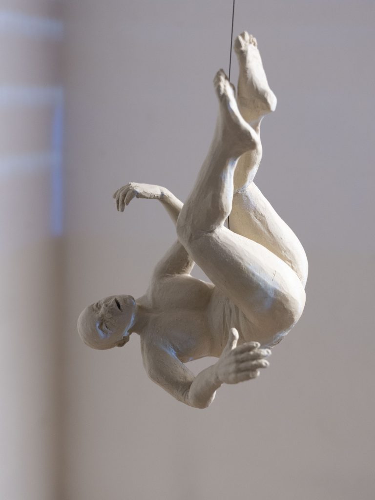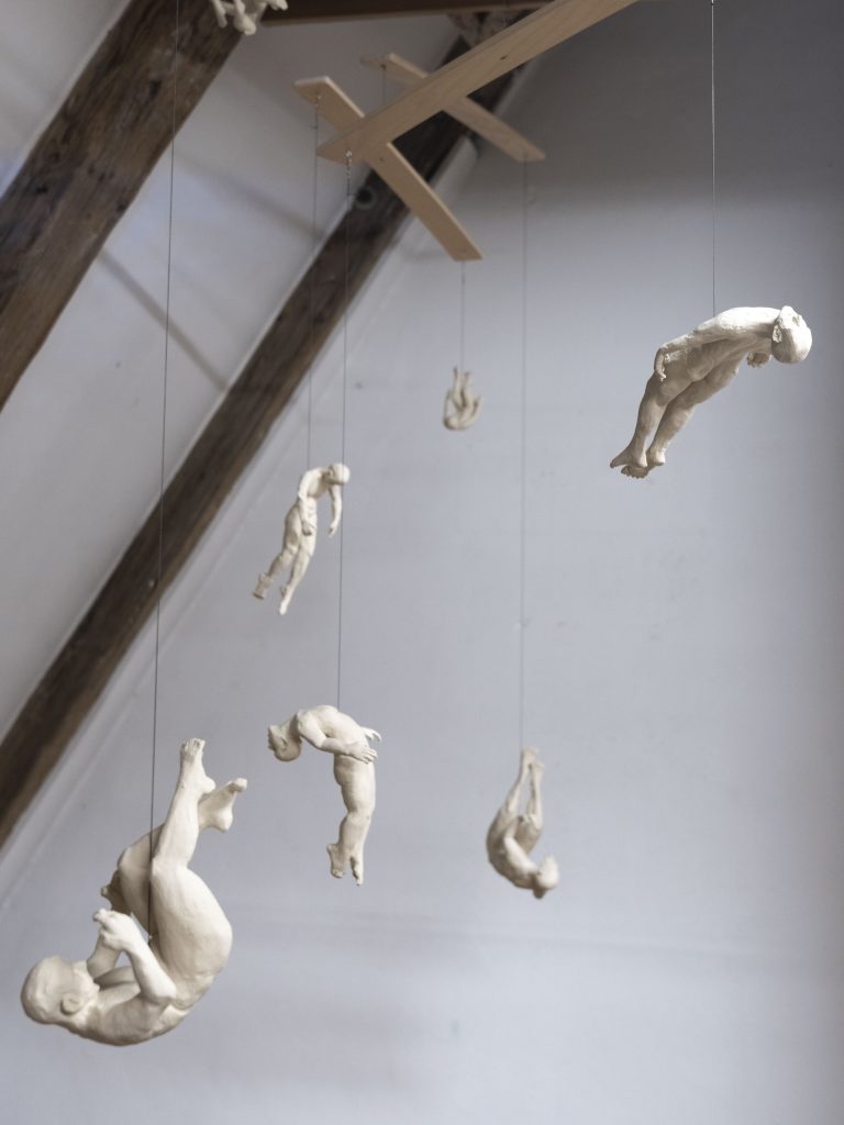The central Mediterranean Sea is one of the deadliest borders in the world—yet thousands of people attempt the crossing every year. In 2024 alone, 1,810 people were reported missing or dead. These are the official numbers; the unreported cases are believed to be significantly higher. More infos: Missing Migrants Project This installation consists of a mobile structure with a diameter of 350 cm, featuring 12 stoneware figures and a video projection. The video shows the absurd duality between German politics and real events unfolding in the central Mediterranean. The video is based on a two-month-long search and rescue (SAR) mission carried out in 2024/2025.
